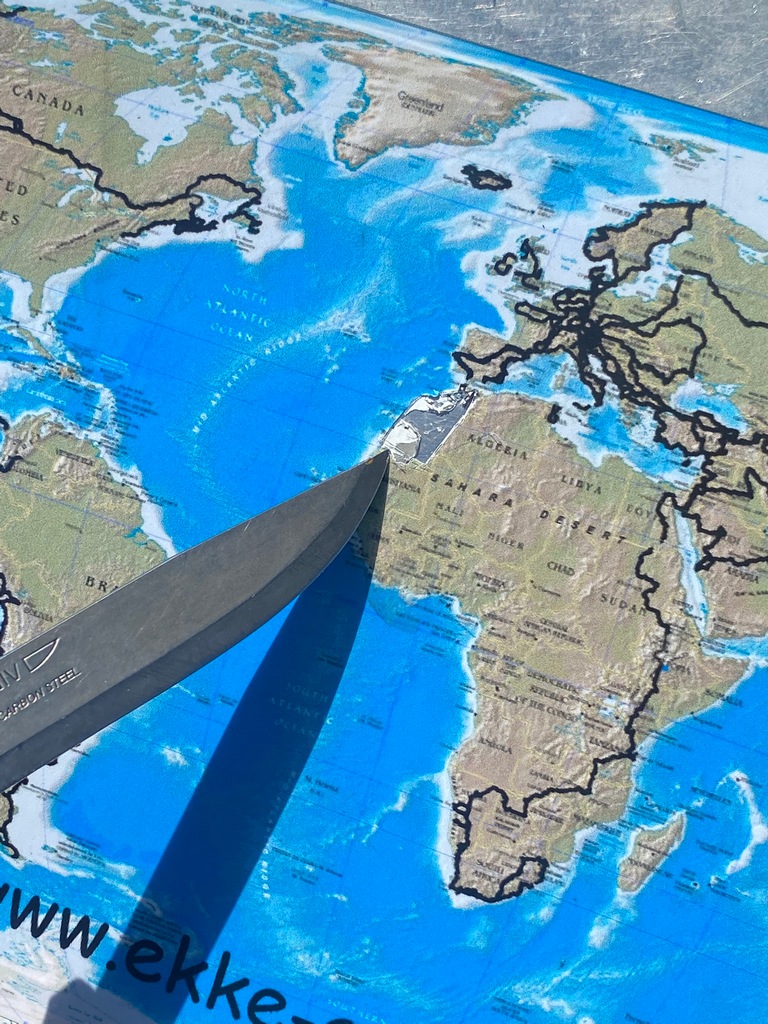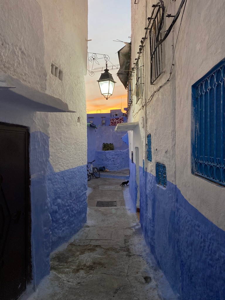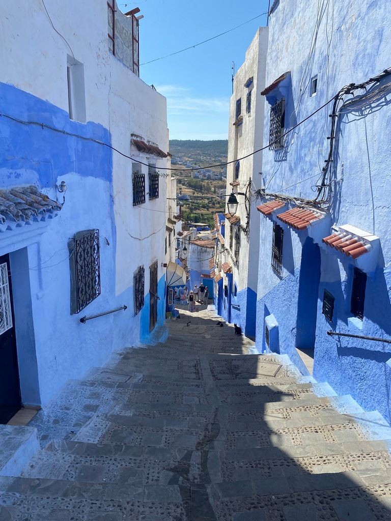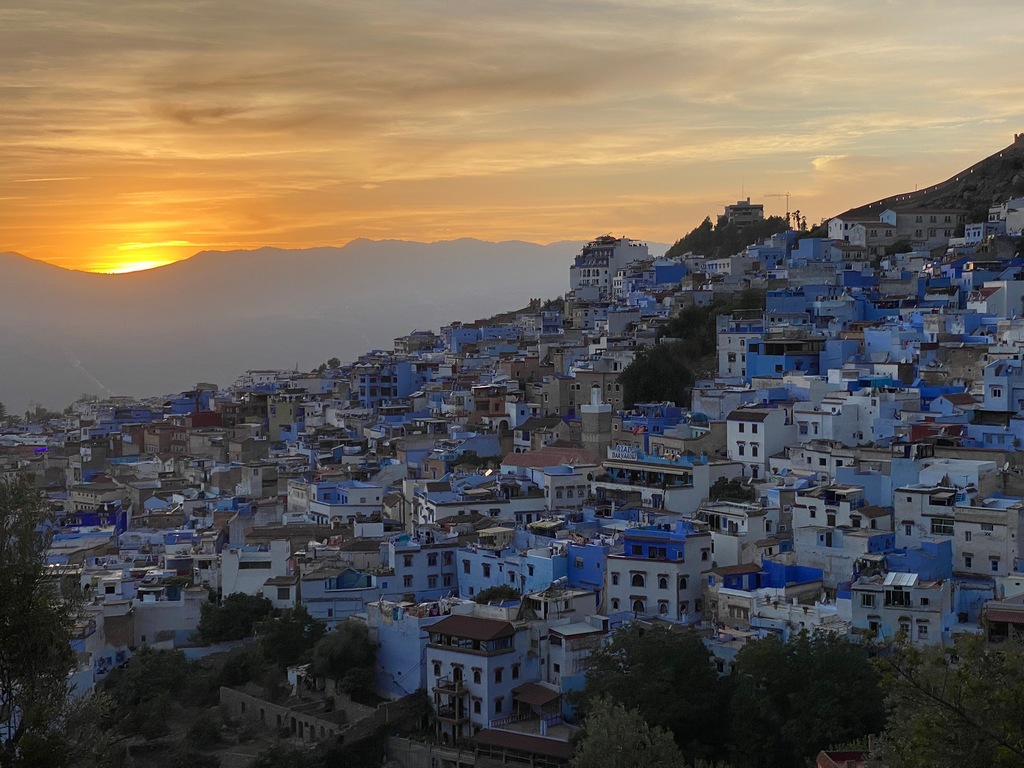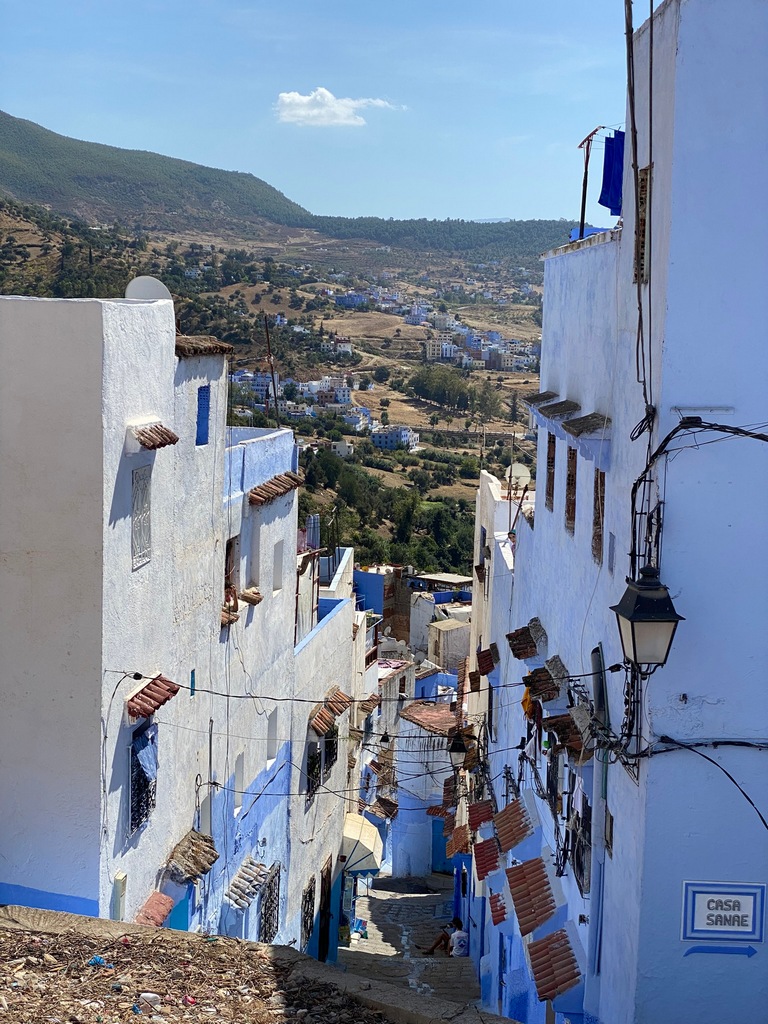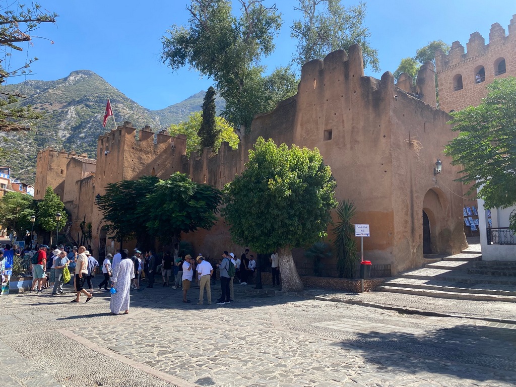 To Morocco! It was an uneventful crossing of the Straits of Gibraltar to Tangier Med on Friday. Passport control was done right on the ship so only the customs inspection needed to be done when we landed. I was first off the boat and rode about a kilometre to the empty customs booths. An official looked at the map on my saddlebag and said something about a problem. He called someone else over who said I have to remove the map. What? The map with my GPS tracks showed a dotted line in Morocco for the Western Sahara, or as the official called it, Moroccan Sahara. Ah. I started to peel it off but then he said if I had a knife, I could just cut away the offending portion. I did have a knife with me so cut Morocco out and that seemed to satisfy him. Leaving the port, I was on a divided highway for about 3 kilometres when the GPS turned me off at a small village and then onto a dirt road through town, just as people were leaving Friday prayers. After dodging worshippers, I came to a tiny, but paved, road that went straight up into mountains. This was fantastic riding and exactly what I had been dreaming of when I thought of riding in Morocco. 20 kilometres later I turned right onto a larger road (it had a line down the middle) that eventually took me to Chefchaouen and the Taj Chefchaouen Luxury Hotel & Spa. This new hotel was built just inside the old city wall, high on a cliff with the most spectacular views of “the Blue City”. At the front desk I was treated like a celebrity and the clerk said I am famous. “You are from Calgary on the motorcycle!” Apparently, they had Googled me when they saw the reservation. After a tour of the hotel, I quickly determined I needed to stay another night. I may not make it to Dakar.