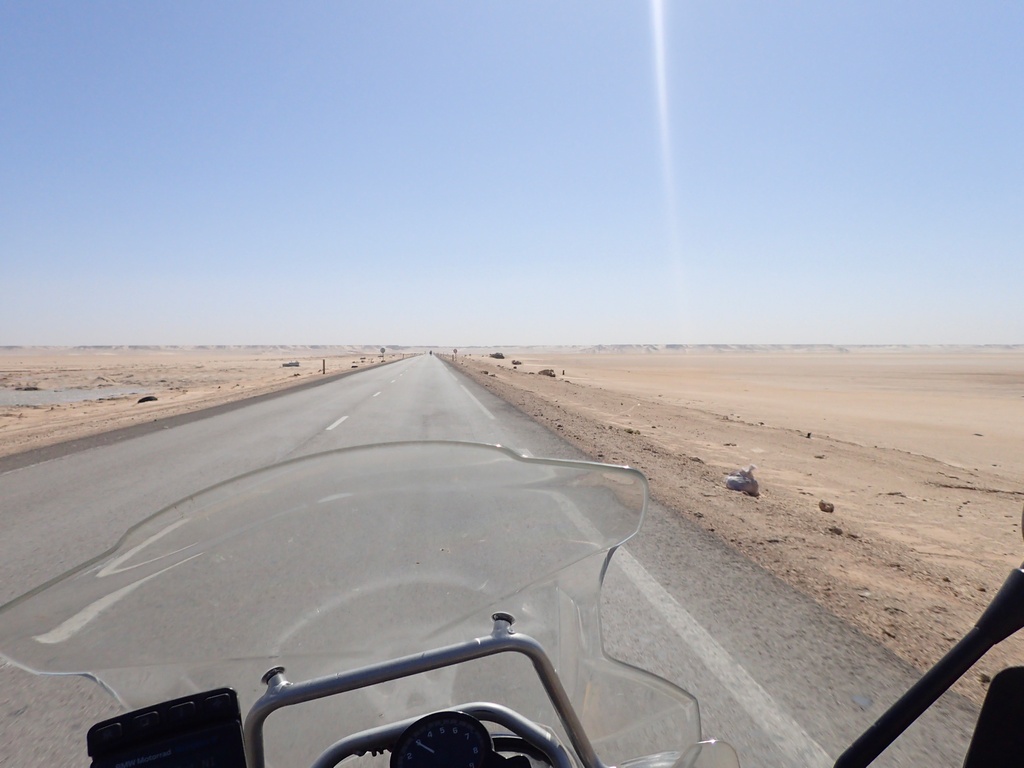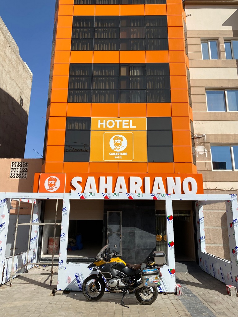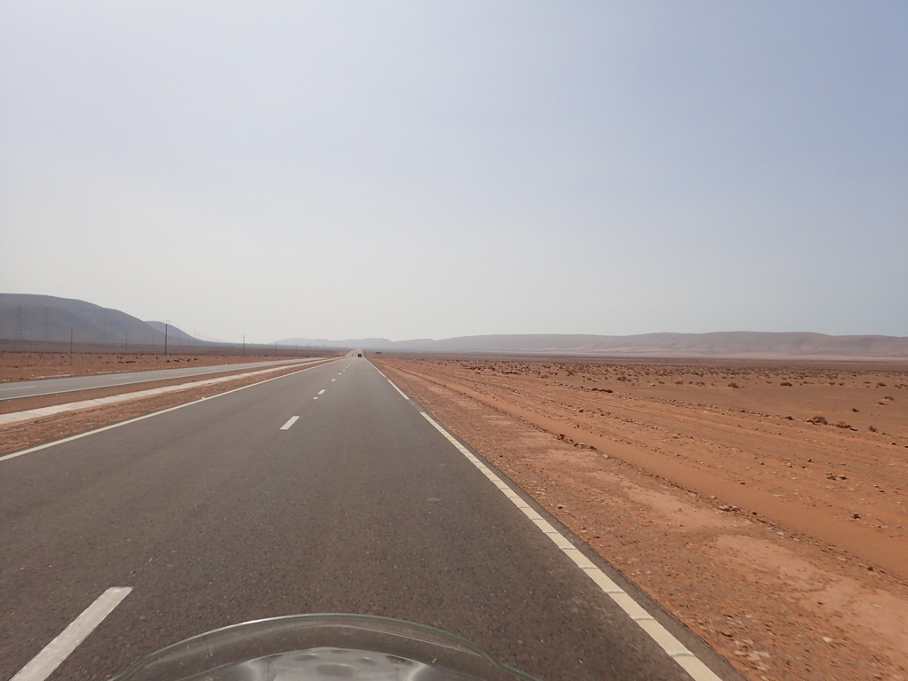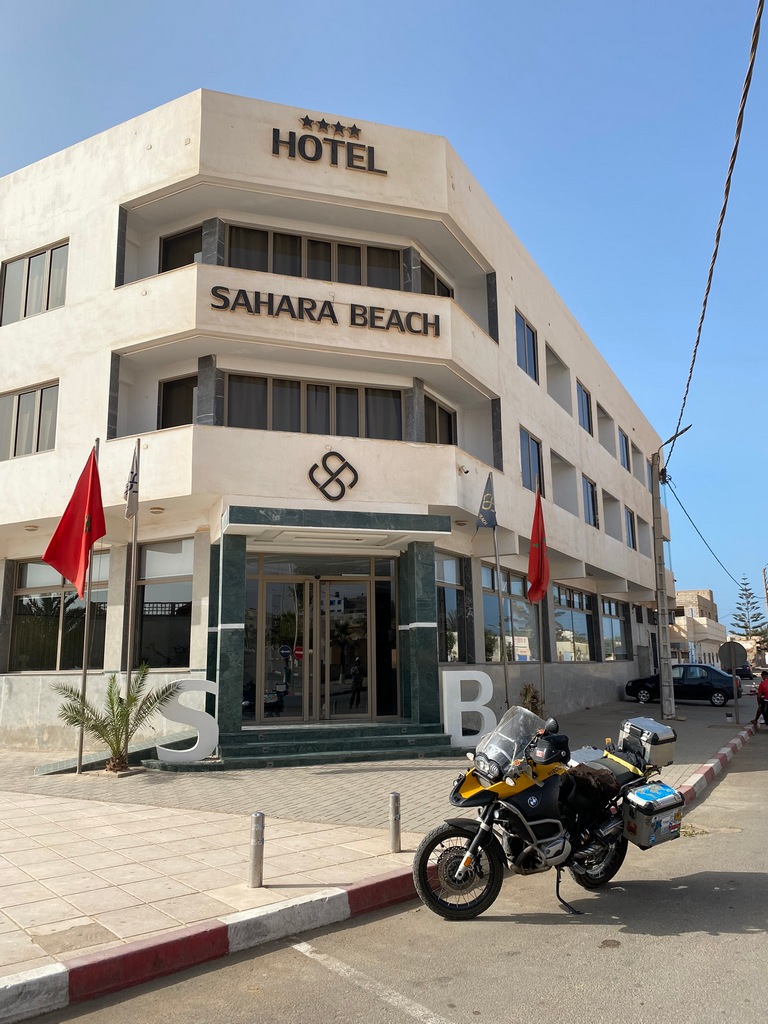 Leaving Ouarzazate I first rode to Aït Benhaddou, an historic town of earthen clay on the caravan route to Marrakesh. It has been a fortified village since the 11th century and on the UNESCO list since 1987. Being only 35 kilometres from Ouarzazate it was also part of the bustling film industry in the area. It was easy riding to Agadir but wow, has this place changed since Audrey and I camped here for a month in 2003. I stayed in a fancy hotel in the tourist zone, a cluster of fancy hotels coming back from the beach. It doesn’t feel like Morocco at all. I could be in Majorca. This is as far south as Audrey and I came, so now it will be all new as I ride to Dakar. Here is the link to the Morocco chapter of the website back in 2003: Chapter 14 Morocco Friday I had to ride about 30 kilometres to get out of the metropolitan area traffic but then, to my surprise, it was a four-lane divided highway all the way to Tan-Tan. The best part of the ride was coming to a road sign showing 2353 kilometres to Dakar!You may be wondering why I am rushing through Morocco (and Spain before this). There are two reasons, one is that I am focussed on getting to Dakar and would prefer to have some time in hand in case anything goes awry. The second reason is that Audrey and I have visited so many places before (like Fez and Meknes and Marrakesh) so I am hesitant to come to a place with expectations that will be dashed. Let’s face it, I can’t possibly improve on any memory that Audrey and I did together.