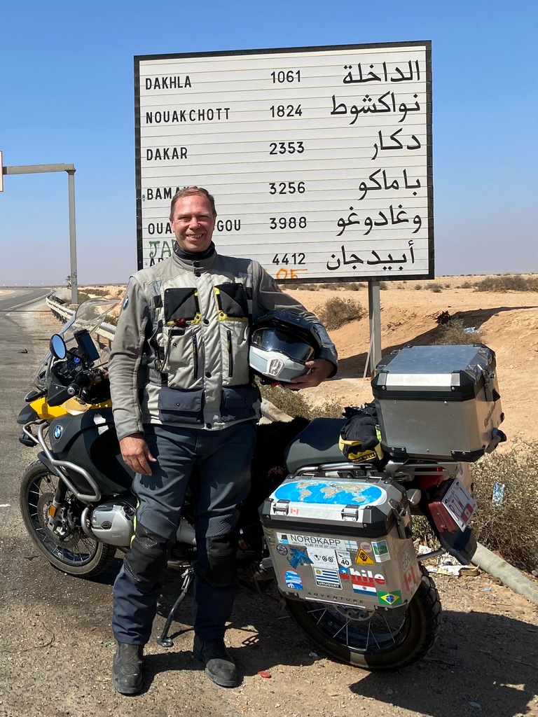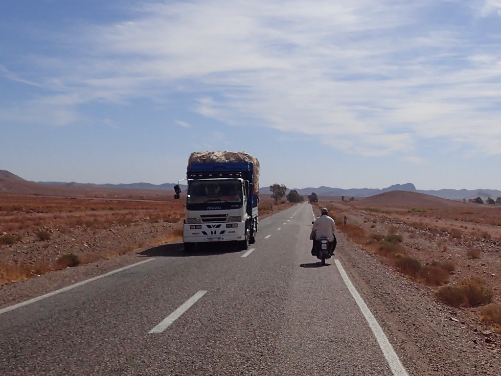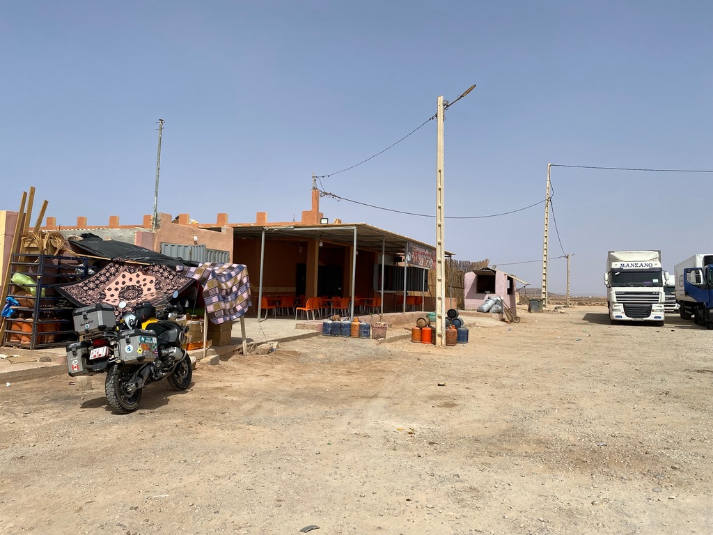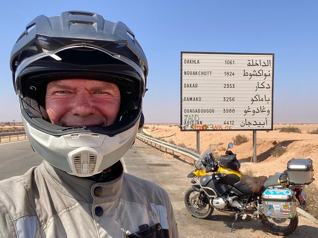 Leaving Ouarzazate I first rode to Aït Benhaddou, an historic town of earthen clay on the caravan route to Marrakesh. It has been a fortified village since the 11th century and on the UNESCO list since 1987. Being only 35 kilometres from Ouarzazate it was also part of the bustling film industry in the area. It was easy riding to Agadir but wow, has this place changed since Audrey and I camped here for a month in 2003. I stayed in a fancy hotel in the tourist zone, a cluster of fancy hotels coming back from the beach. It doesn’t feel like Morocco at all. I could be in Majorca. This is as far south as Audrey and I came, so now it will be all new as I ride to Dakar. Here is the link to the Morocco chapter of the website back in 2003: Chapter 14 Morocco Friday I had to ride about 30 kilometres to get out of the metropolitan area traffic but then, to my surprise, it was a four-lane divided highway all the way to Tan-Tan. The best part of the ride was coming to a road sign showing 2353 kilometres to Dakar!You may be wondering why I am rushing through Morocco (and Spain before this). There are two reasons, one is that I am focussed on getting to Dakar and would prefer to have some time in hand in case anything goes awry. The second reason is that Audrey and I have visited so many places before (like Fez and Meknes and Marrakesh) so I am hesitant to come to a place with expectations that will be dashed. Let’s face it, I can’t possibly improve on any memory that Audrey and I did together.