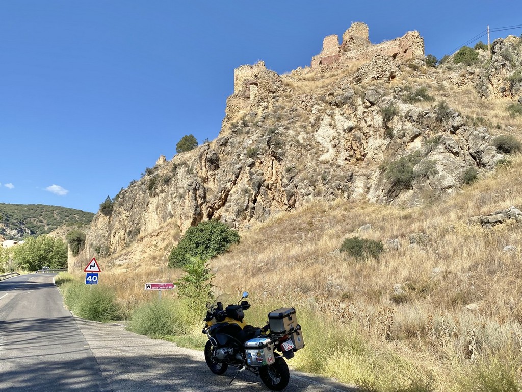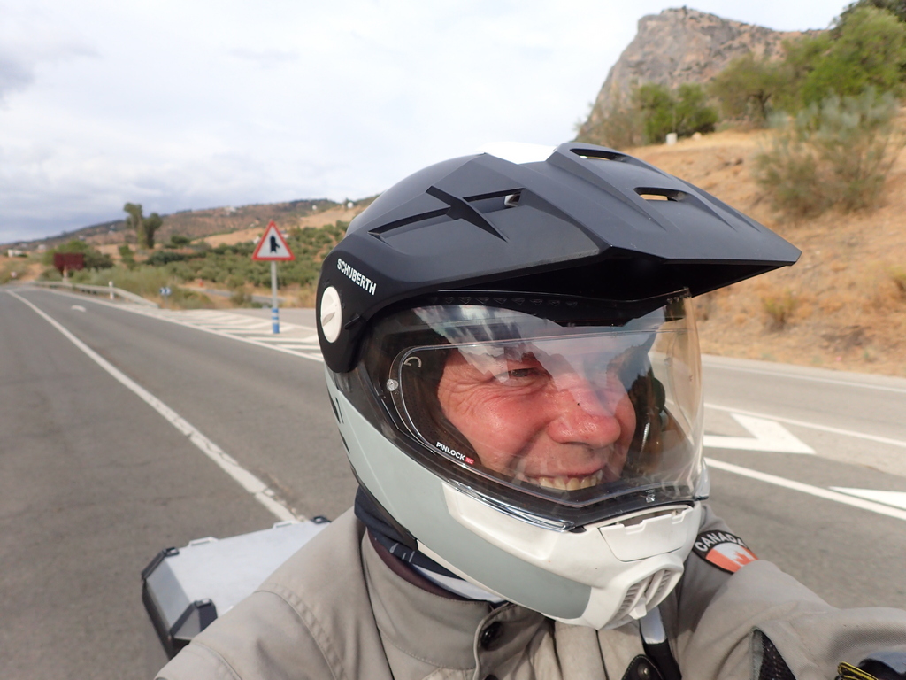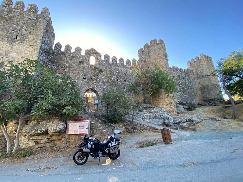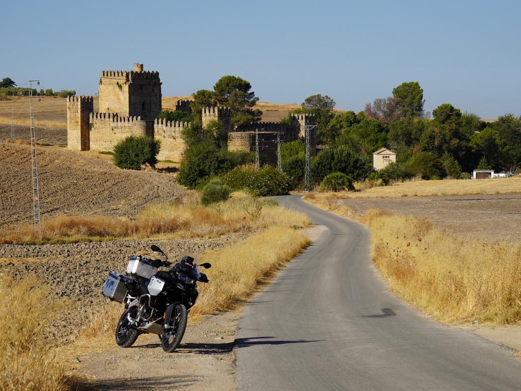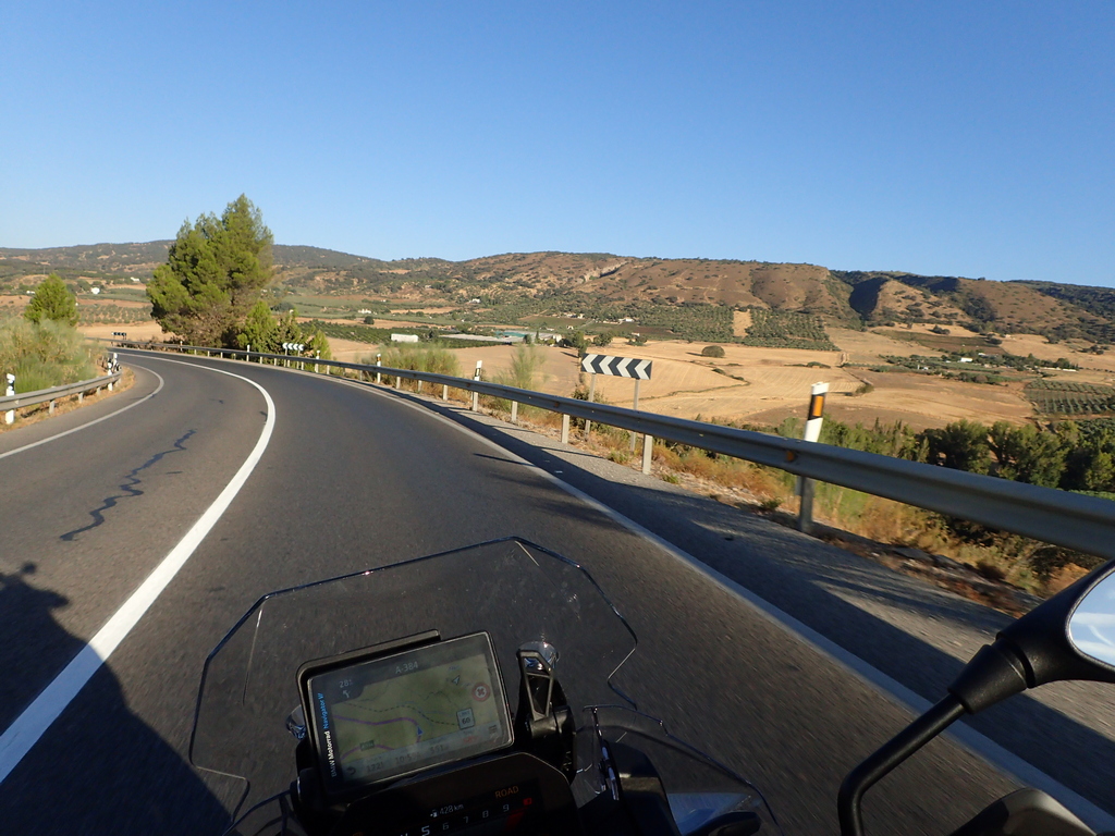 Thursday morning, I packed up my F900GSA loaner bike to ride back to Seville. On the way north I saw a castle that I had missed the day before, so I had to go investigate. Castillo de las Aguzaderas is part of a chain of fortresses known as the Moorish Strip built in this location to protect an important water source. That’s why it’s rather unique, being in a valley rather on an easily defended hill top. The bike wasn't ready when I got to Boxer Motorrad, so I walked over to the coffee shop at the enormous Yamaha store. I heard the sound of a BMW going by and looked up from my cappuccino to see Fernando, the mechanic, riding my bike! Sweet. Fernando absolutely insisted that I take it for a test ride before leaving. The steering was still a little stiffer than before but OK and Fernando said it would loosen up in a few kilometres. Now I could safely book a hotel in Algeciras. I said goodbye to Victor, the super helpful and friendly service representative, and got on the road. It was an easy and uneventful ride to the port city and after I checked into the grand Hotel Reina Cristina I booked my ferry ticket to Morocco for the next day.Good morning! Riding out of Ronda.