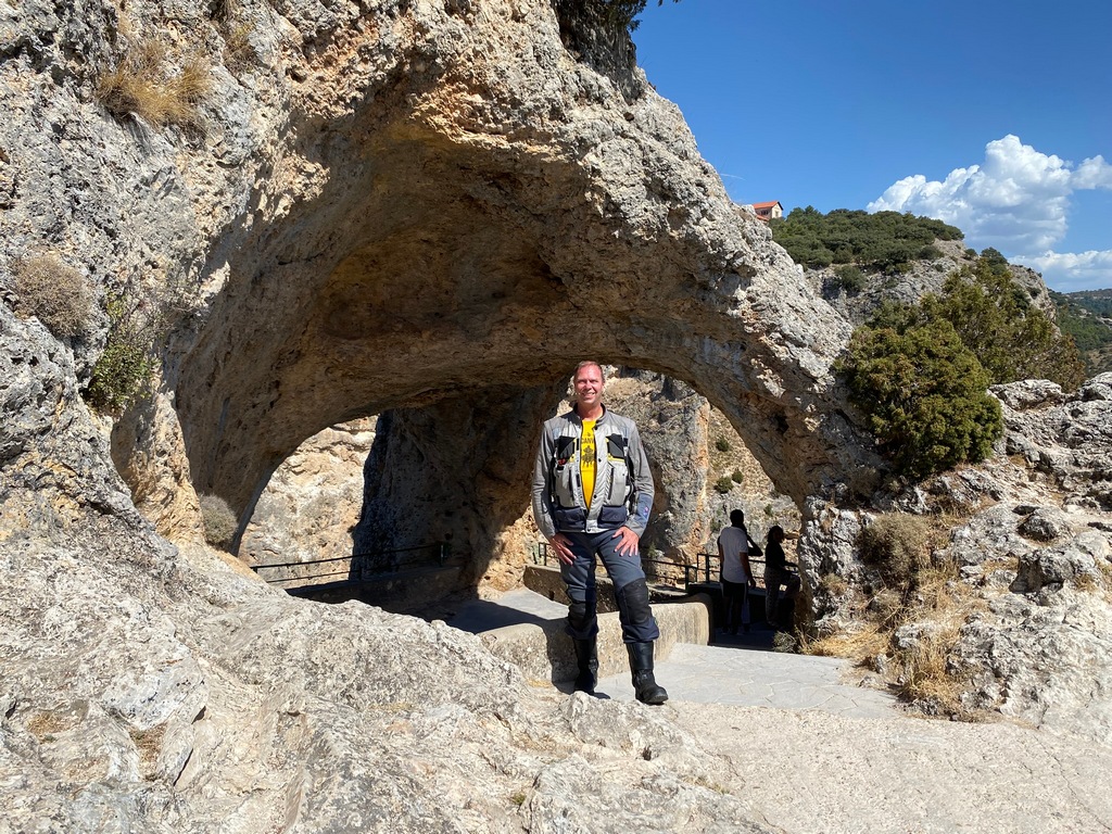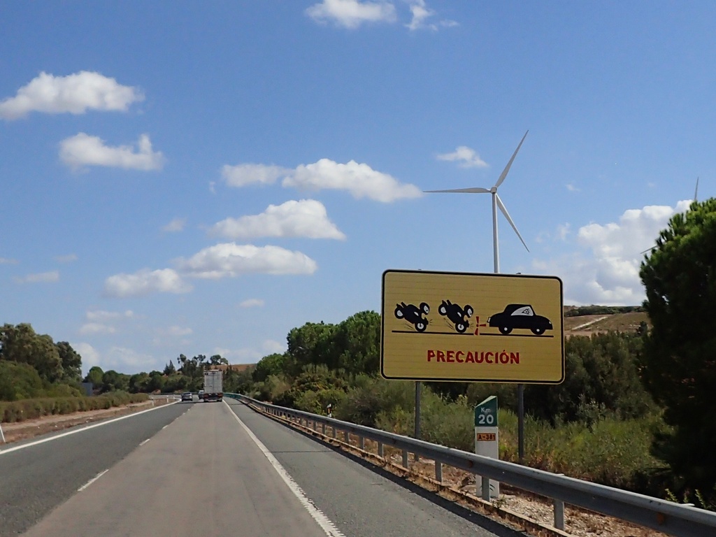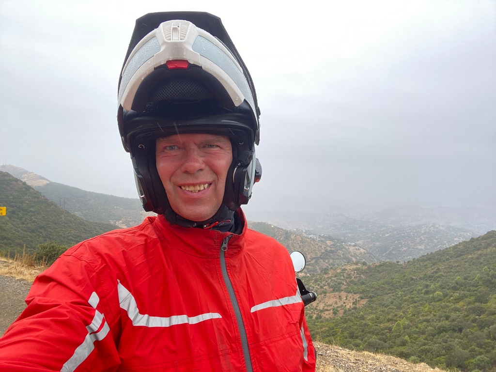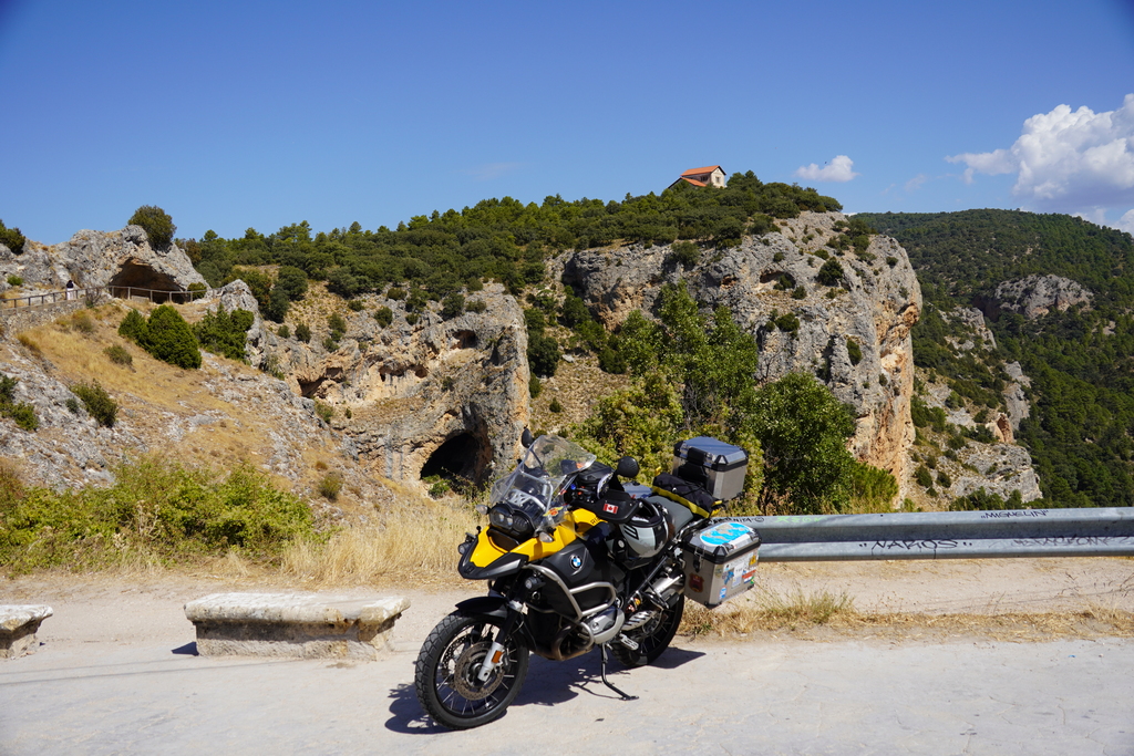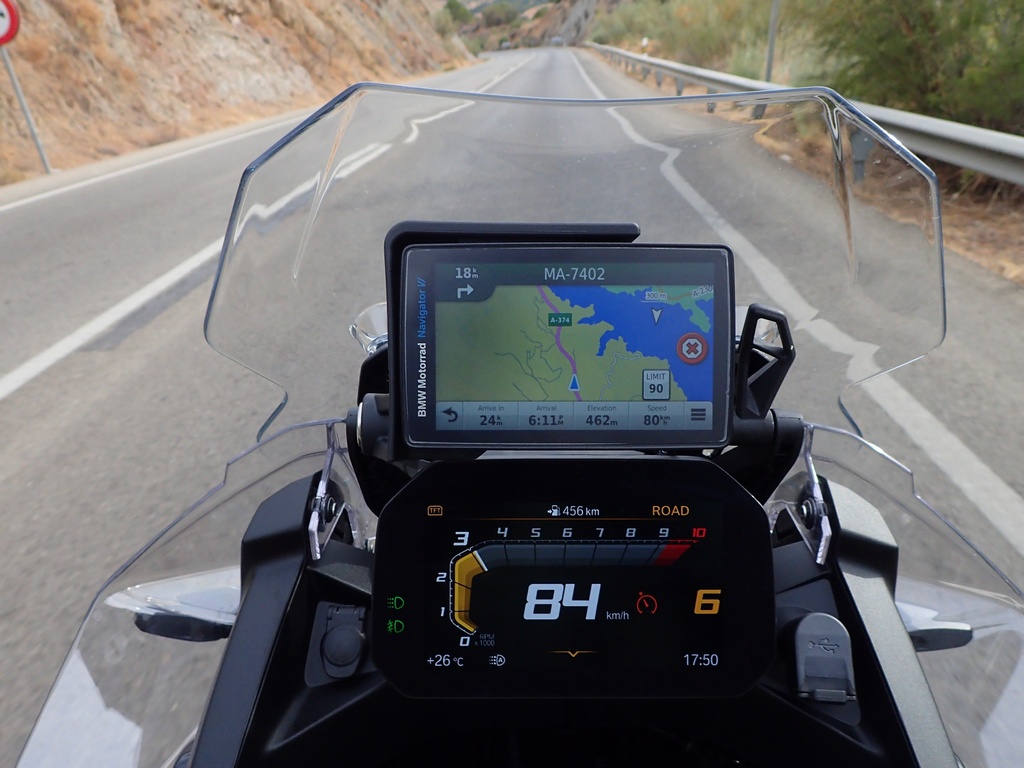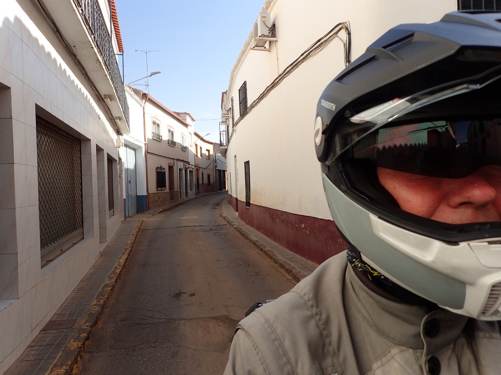 Thursday morning, I packed up my F900GSA loaner bike to ride back to Seville. On the way north I saw a castle that I had missed the day before, so I had to go investigate. Castillo de las Aguzaderas is part of a chain of fortresses known as the Moorish Strip built in this location to protect an important water source. That’s why it’s rather unique, being in a valley rather on an easily defended hill top. The bike wasn't ready when I got to Boxer Motorrad, so I walked over to the coffee shop at the enormous Yamaha store. I heard the sound of a BMW going by and looked up from my cappuccino to see Fernando, the mechanic, riding my bike! Sweet. Fernando absolutely insisted that I take it for a test ride before leaving. The steering was still a little stiffer than before but OK and Fernando said it would loosen up in a few kilometres. Now I could safely book a hotel in Algeciras. I said goodbye to Victor, the super helpful and friendly service representative, and got on the road. It was an easy and uneventful ride to the port city and after I checked into the grand Hotel Reina Cristina I booked my ferry ticket to Morocco for the next day.Good morning! Riding out of Ronda.