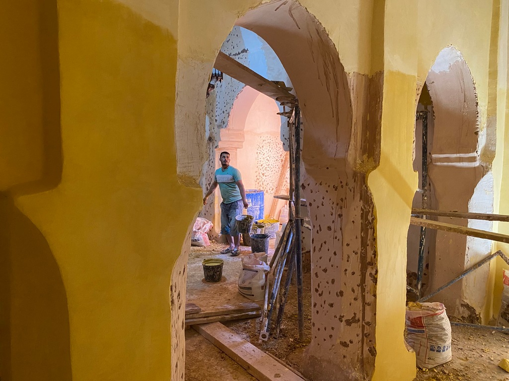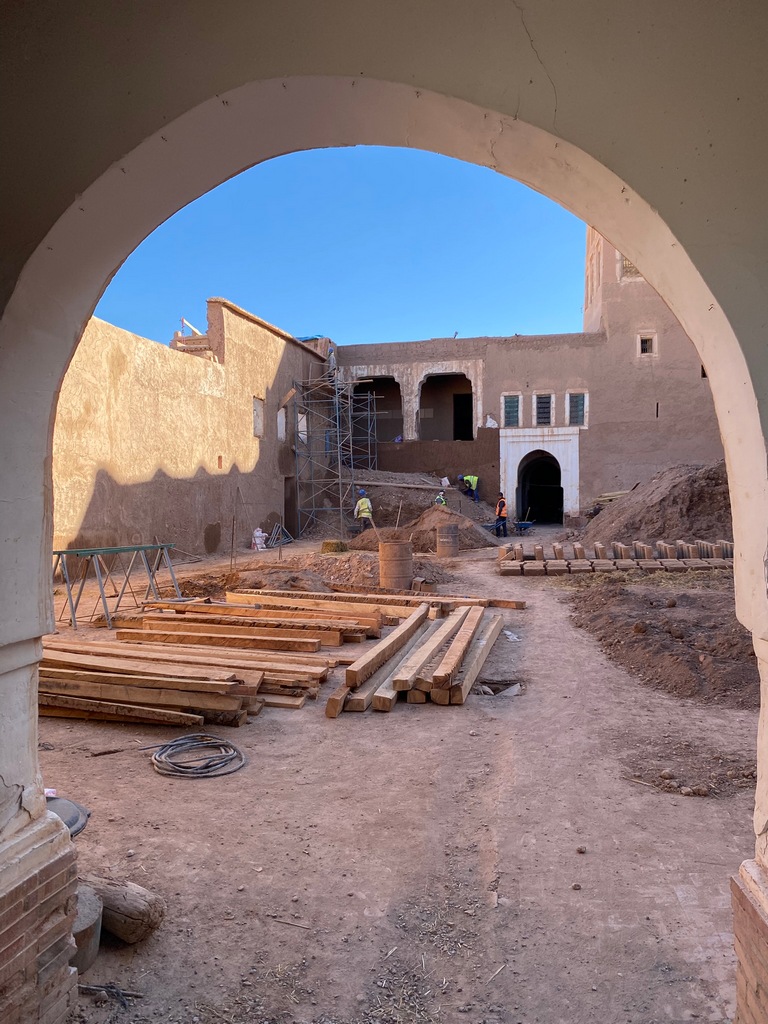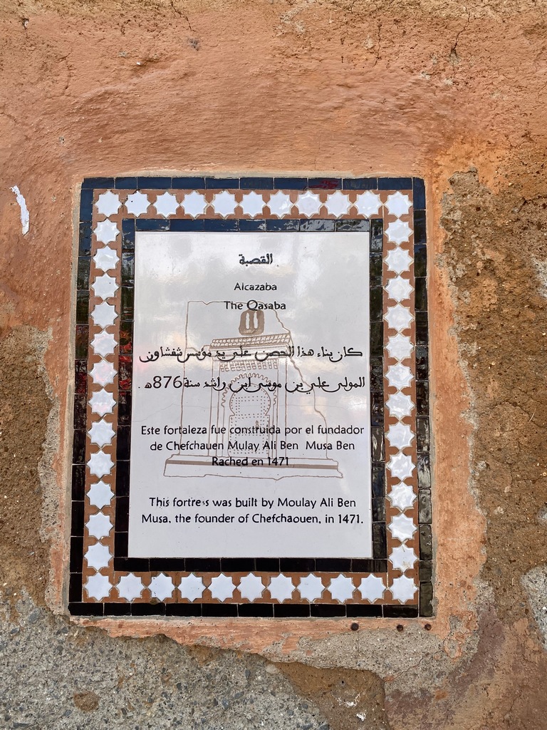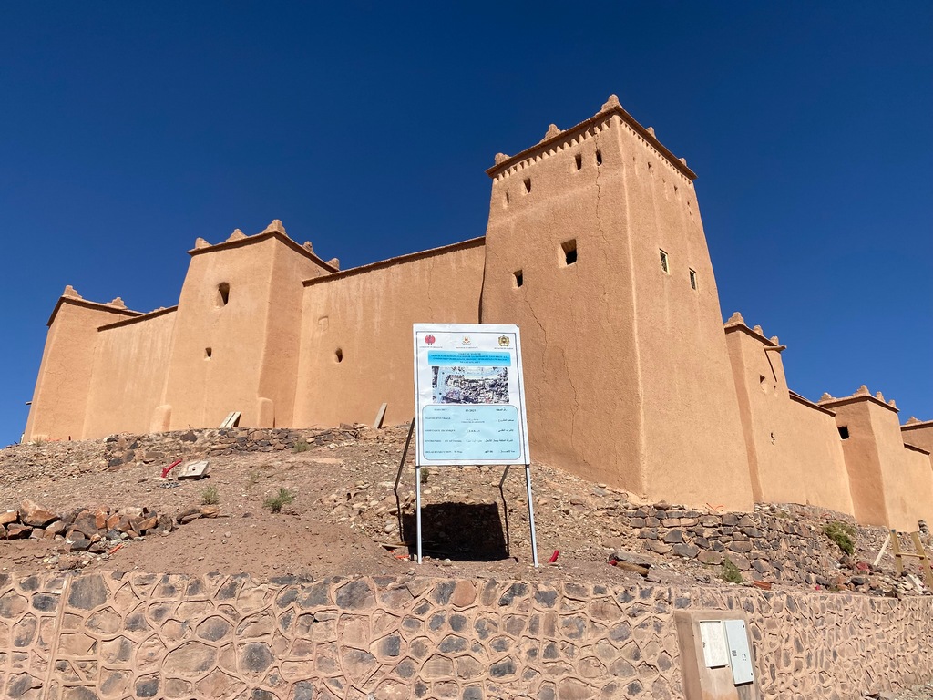The sign explains the restoration of the kasbah after the 2023 earthquake