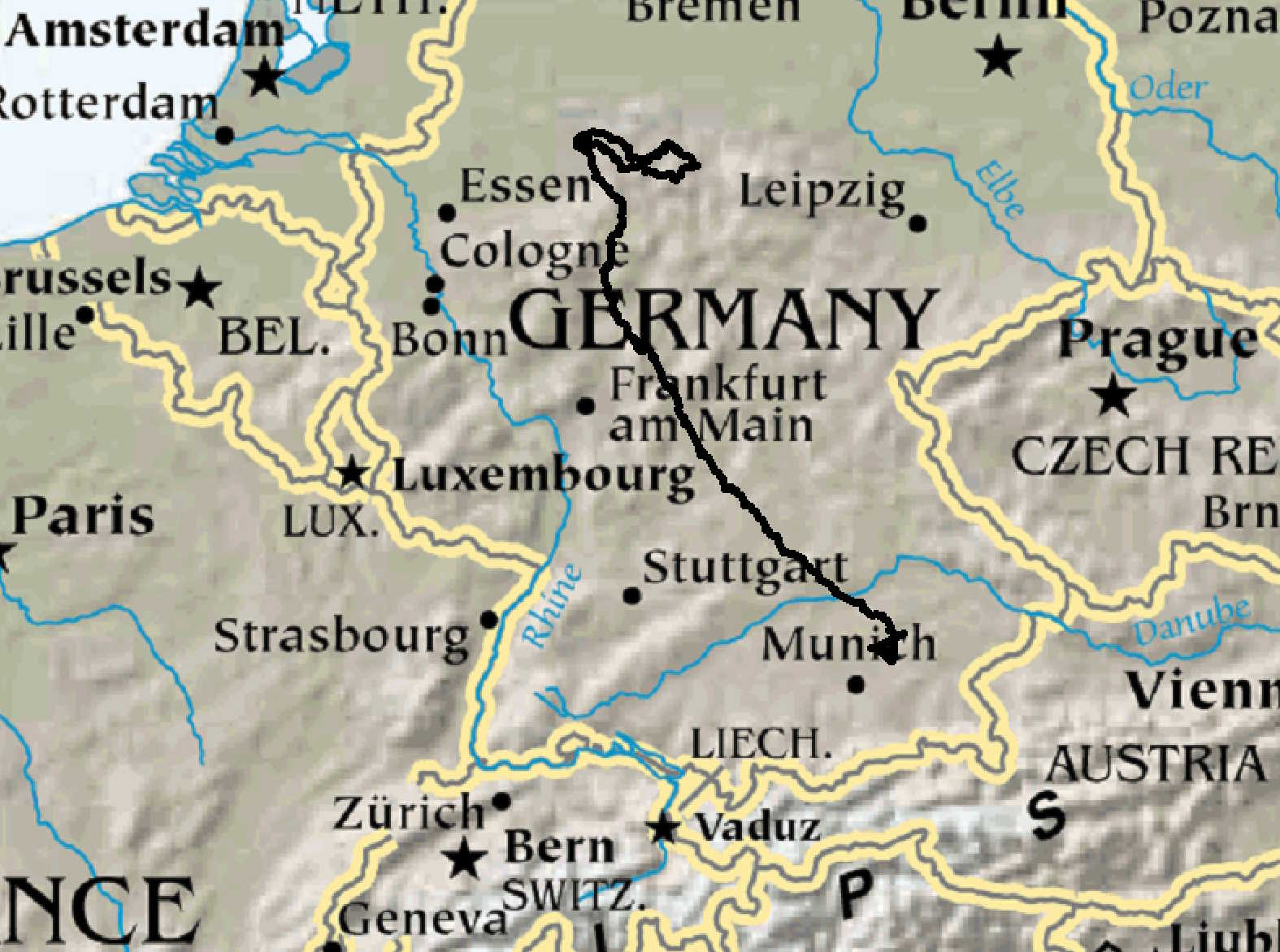 After visiting Helena’s new workplace, right in Kronwinkl, on Wednesday morning I saddled up and hit the road north on the way to Bielefeld to visit Inge und Peter on 3 September. I’ve always enjoyed riding the German back roads and today was no exception. Until I got to the busy traffic of Ingolstadt where an Audi tried to take my lane anyway. At least I had the opportunity to use my newly functional horn. My hotel in Würzburg was about five kilometres from the old town and that turned out to be a great walk. On the left bank of the River Main, next to a canal lock, I found the Goldene Gans bier garten. For some reason I ordered the XL sausages with sauerkraut. Whoa, that was a lot. Better make a mental note that German portions are more than adequate. Then a walk around the old town after picking up an ice cream at a grocery store (the lineup at the gelato stand was too long) showed Würzburg to be a lovely town. Leaving downtown I crossed back over the Main just as a Viking river cruise boat was going through the locks. I took a time lapse video and then walked home, up the five kilometres through a dark park. That may not have been the most security conscious decision, but it all turned out OK.Departure from Helena and Willi's house