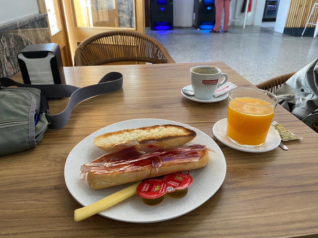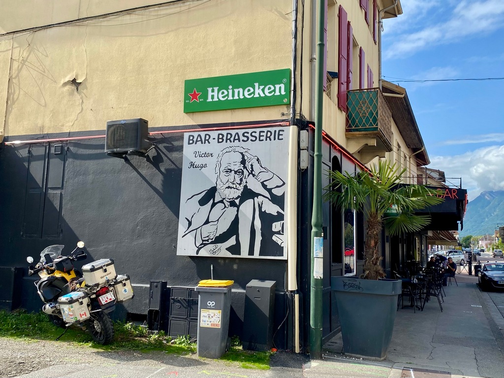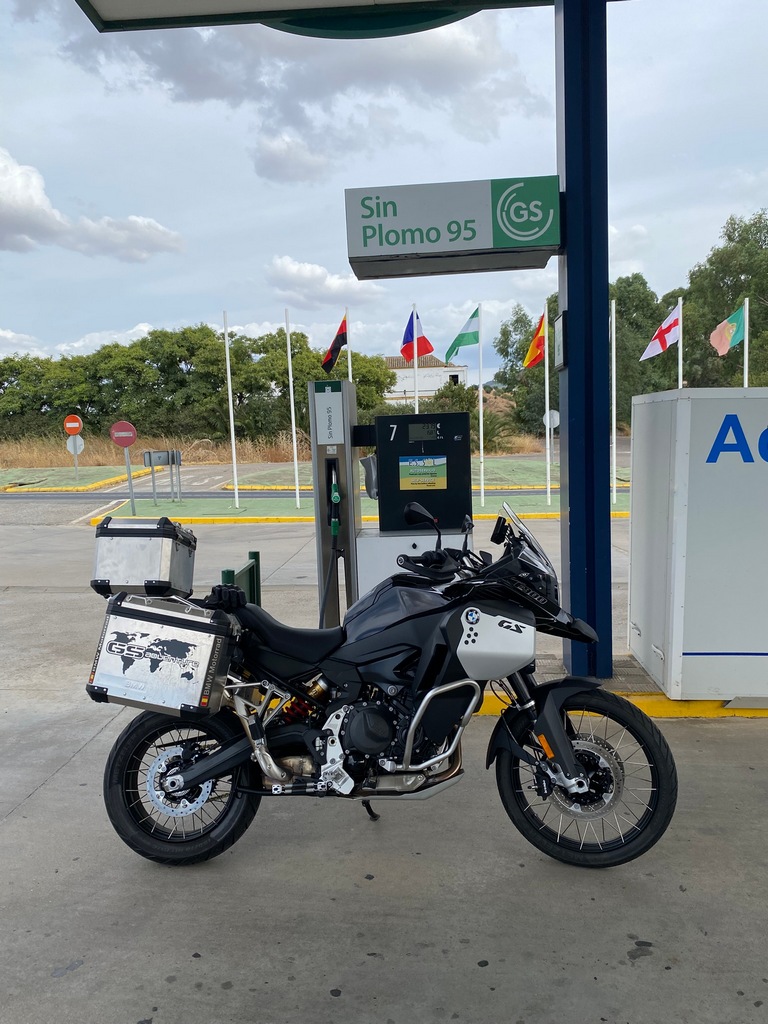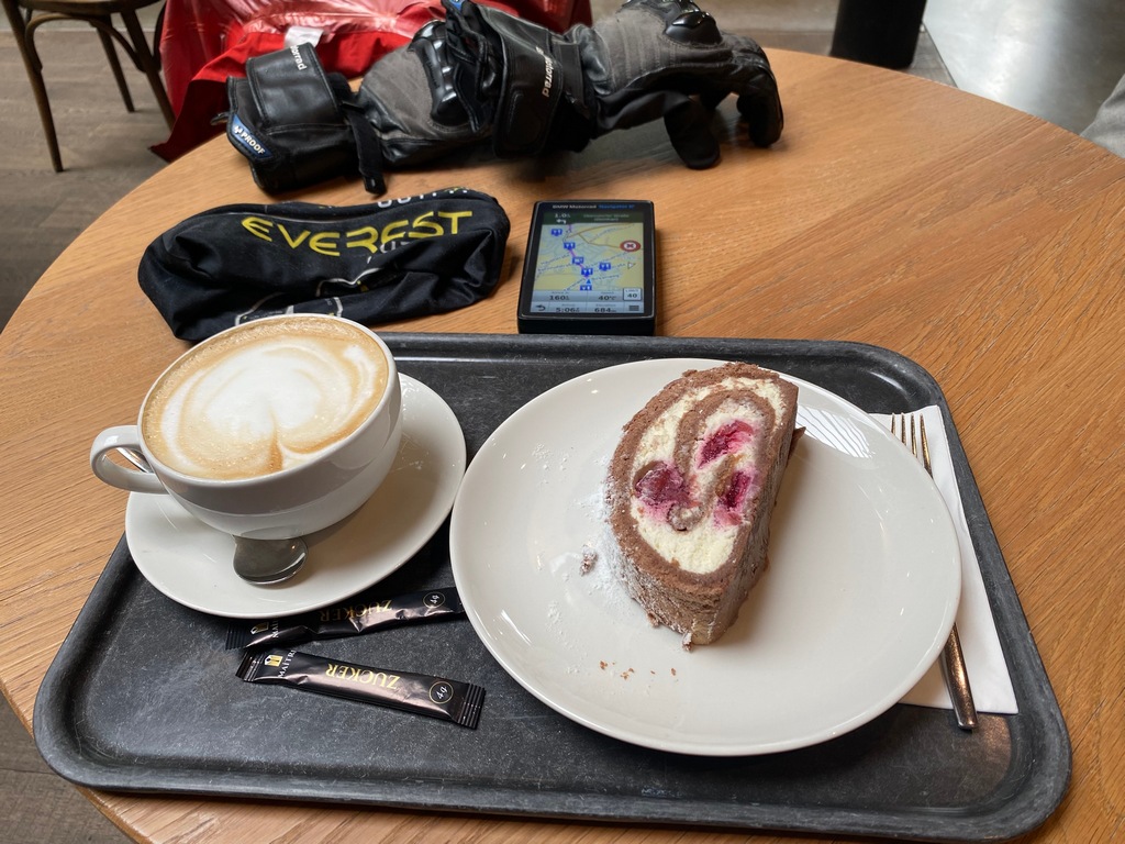 Friday, 29 August, 2025Day 1 of the trip to Dakar is in the books. Job 1 was to get over the jetlag (I'm working on it) and Job 2 was to get the bike running after being in storage for a year (thanks Willi and Helena for the use of your garage!). After I installed a new GPS and tankbag, the bike started immediately. Only bummer is that the right turn signal button didn’t fix itself while it was parked. Tried disassembling it and spraying liberally with contact cleaner but no joy. Might need to buy a new switch cluster or just do hand signals for right turns. Then I met with my friend Alex Lübbe-Sloan and managed to spend three hours laughing and telling stories over cappuccinos and pastries. (You just knew my first stop would be at a bakery, didn’t you?)