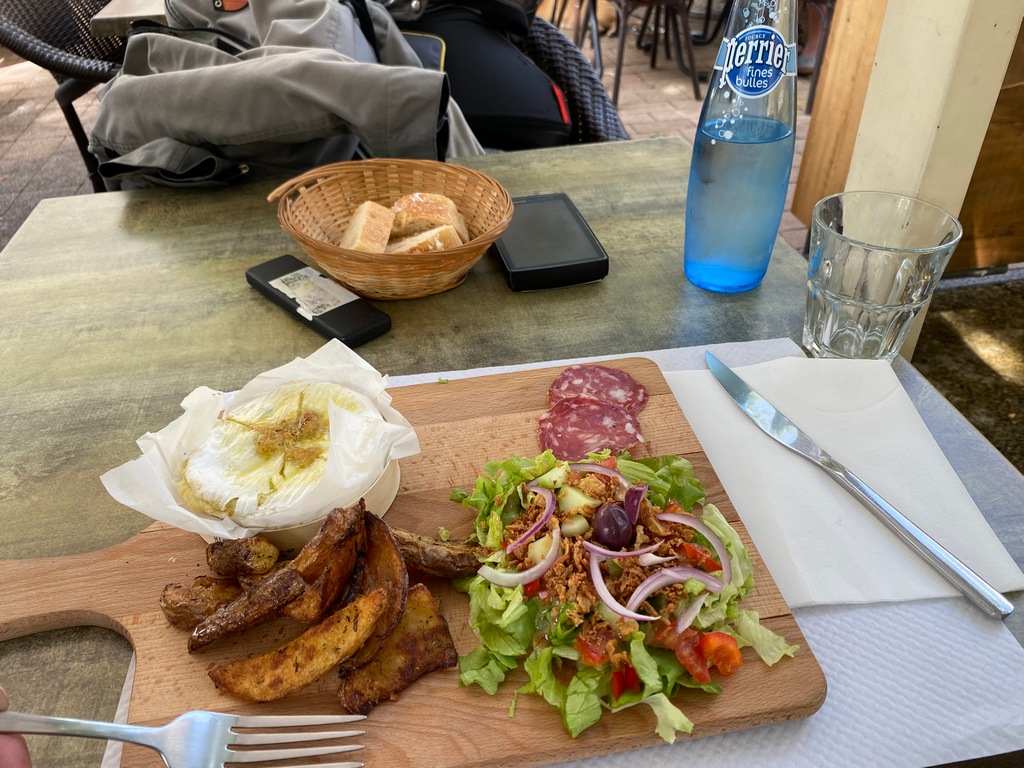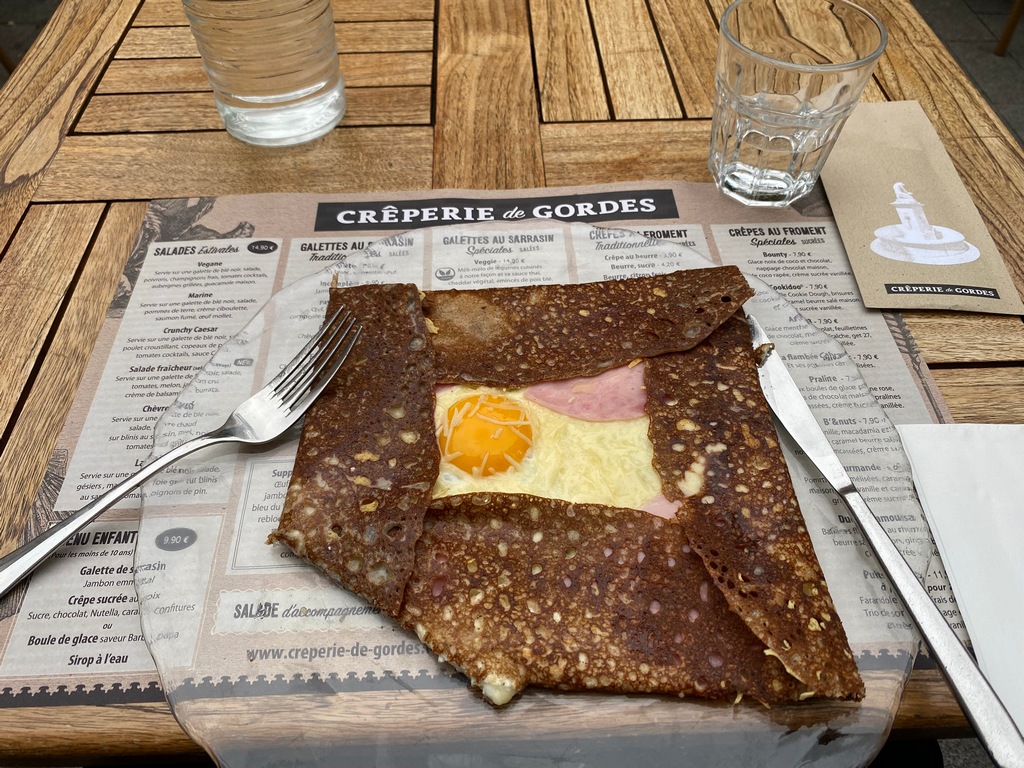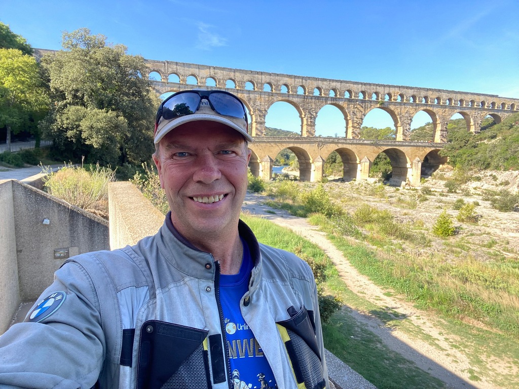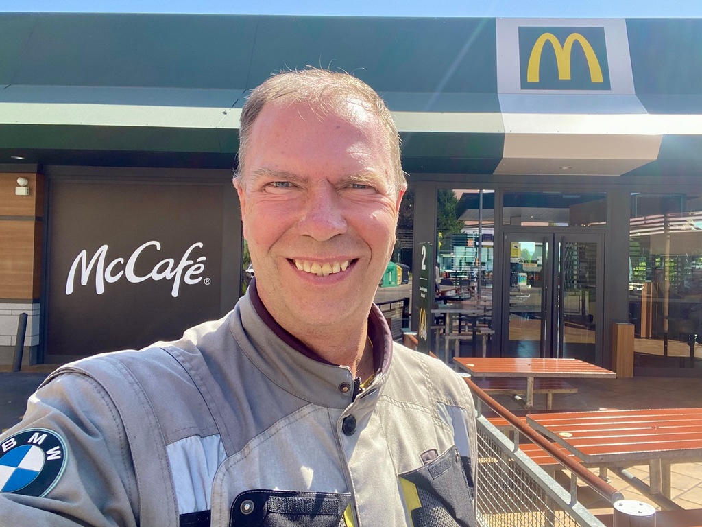 Friday, 29 August, 2025Day 1 of the trip to Dakar is in the books. Job 1 was to get over the jetlag (I'm working on it) and Job 2 was to get the bike running after being in storage for a year (thanks Willi and Helena for the use of your garage!). After I installed a new GPS and tankbag, the bike started immediately. Only bummer is that the right turn signal button didn’t fix itself while it was parked. Tried disassembling it and spraying liberally with contact cleaner but no joy. Might need to buy a new switch cluster or just do hand signals for right turns. Then I met with my friend Alex Lübbe-Sloan and managed to spend three hours laughing and telling stories over cappuccinos and pastries. (You just knew my first stop would be at a bakery, didn’t you?)