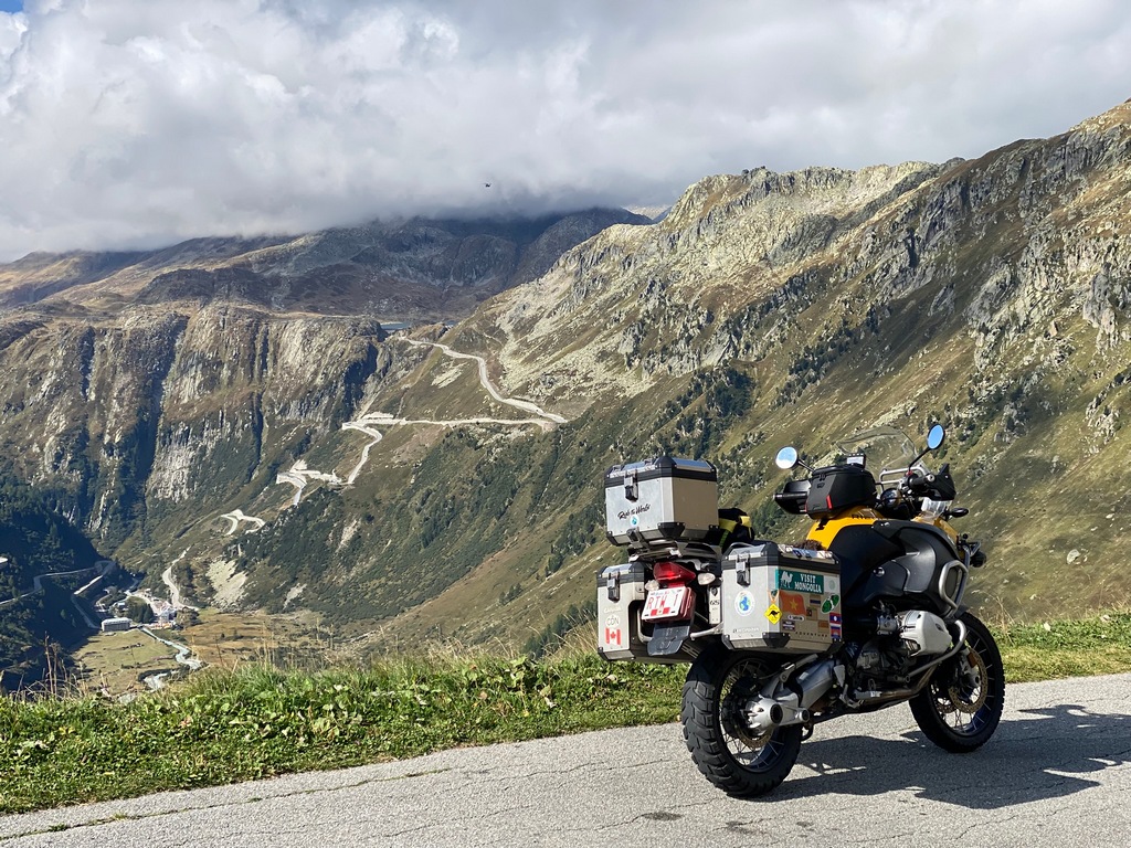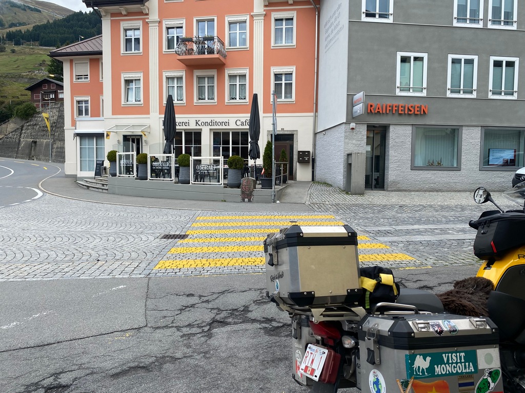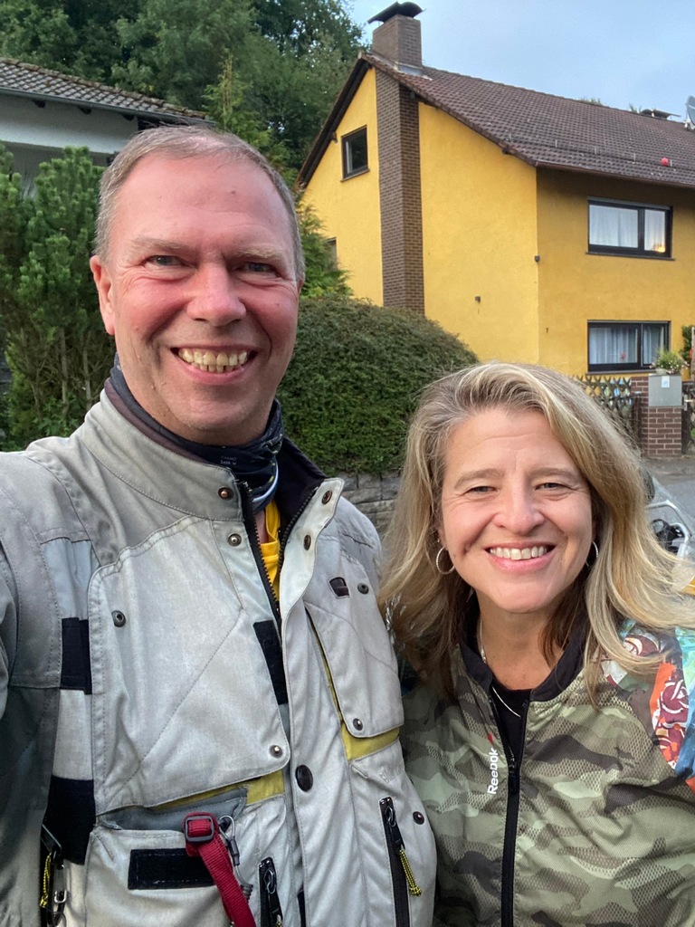 n Monday the trip officially started as I turned south. I left Peter und Inge in Bielefeld after a fun weekend with them. On the way south I passed by Burg Frankenstein. Yes, that Frankenstein. So had to do a quick stop to check out the ruins. Then I met up with Sherri Jo, whom Audrey and I had met in 2011 at the Horizons Unlimited Motorcycle Travel event in Nakusp while she was on her Round The World trip. We chatted for hours getting caught up with each other before I headed to Heppenheim for the night. Then it was a couple of days riding to Andermatt in Switzerland for one of my favourite passes, the San Gottardo. I am staying outside of the hideously expensive Andermatt in Sedrun.Until next time Inge und Peter!