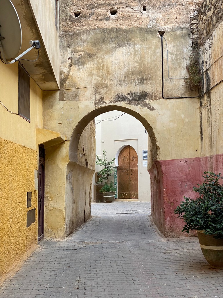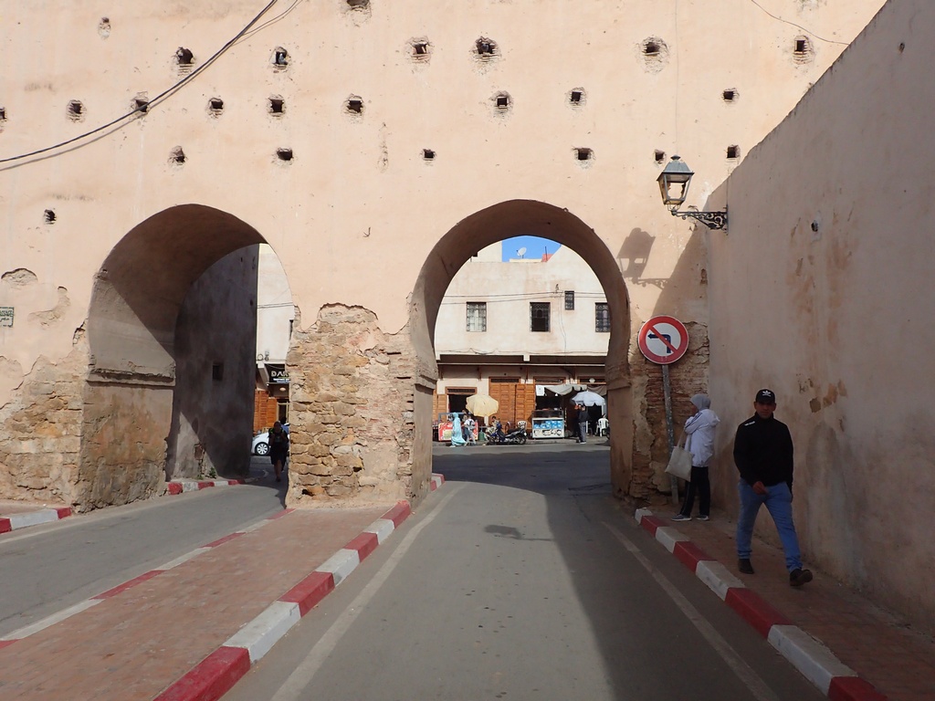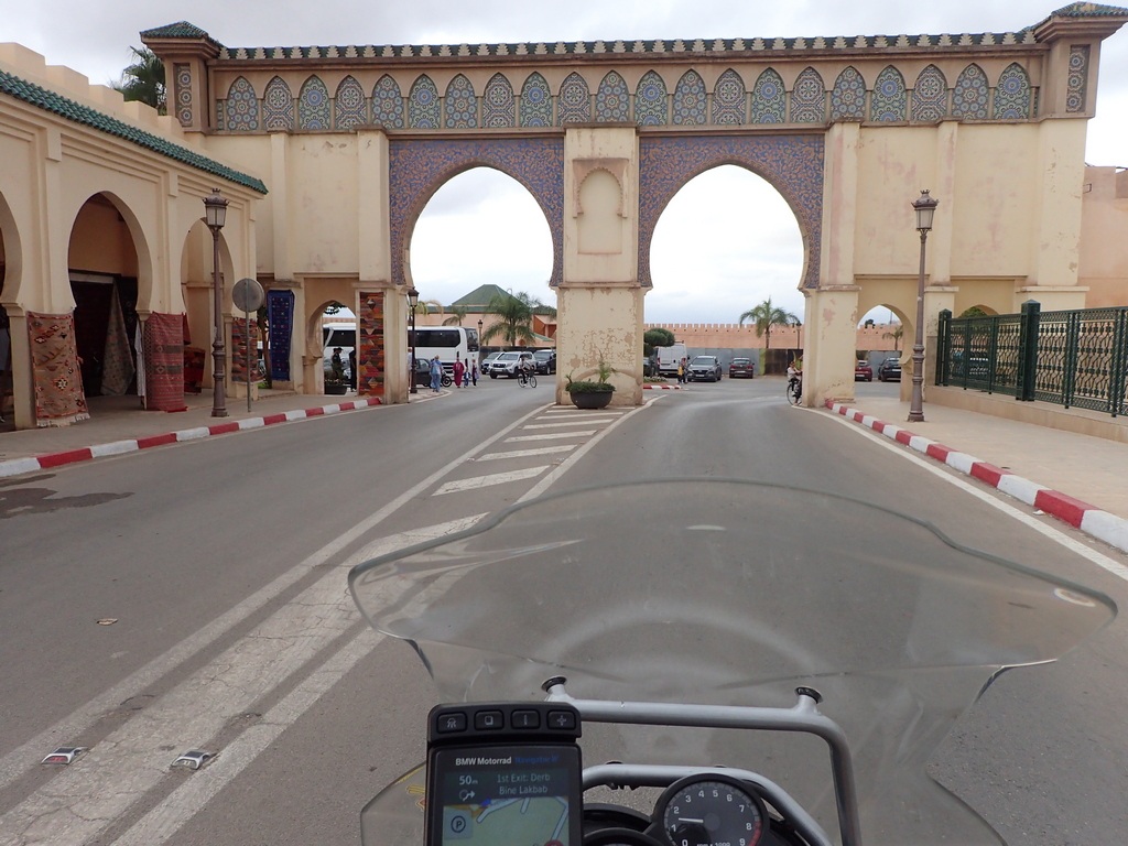 It was a relatively short ride from Chefchaouen to Meknes on Sunday. But I took smaller back roads, so it took the whole day. Fairly cool and cloudy for most of the day and a bit of rain thrown in for good measure. It was fun to be riding away from the tourist areas where the young boys' eyes light up when they see the bike coming and come running out to the street. I had booked a riad that seems to have been built right into the city wall in the imperial city of Meknes. In the evening, I took a walk around town, to the main square and into the bewildering array of tiny passageways in the medina. It’s fun getting lost and finding your way out again.Cool enough to zip up the vents