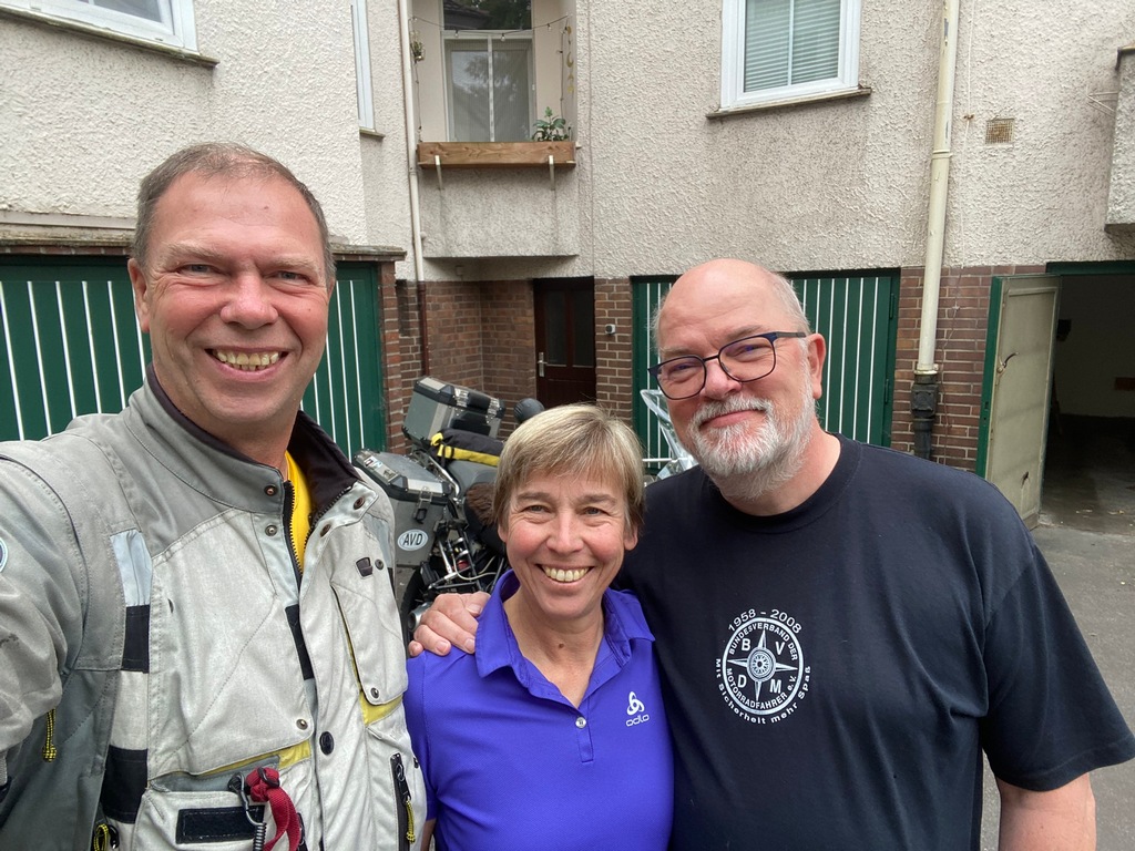 On Thursday morning I enjoyed the €13.50 buffet breakfast at the hotel, but I might have to rethink this. It seems that hotel breakfasts are not included by default anymore, there is usually a charge. Perhaps I’ll do what I did in New Zealand (where motels often didn’t even have the option of breakfast) and pick up granola and milk powder for an inexpensive start to the day. I stopped off at SW Motech to see if they had a spare screw for my tankbag mount. They did, and there was no charge. At Blackfoot in Calgary (where I bought the tankbag) they indicated the screw wasn’t available from SW Motech so I should go to a fastener store to get one. That’s when I thought I should just drop by their headquarters in Germany. I’m glad that worked out OK. I stuck to smaller country roads until Paderbron where there was heavy traffic, and not much fun riding so took the autobahn for the last 30 kilometres to Bielefeld. Peter und Inge warmly welcomed me and showed me to my room for next few days.