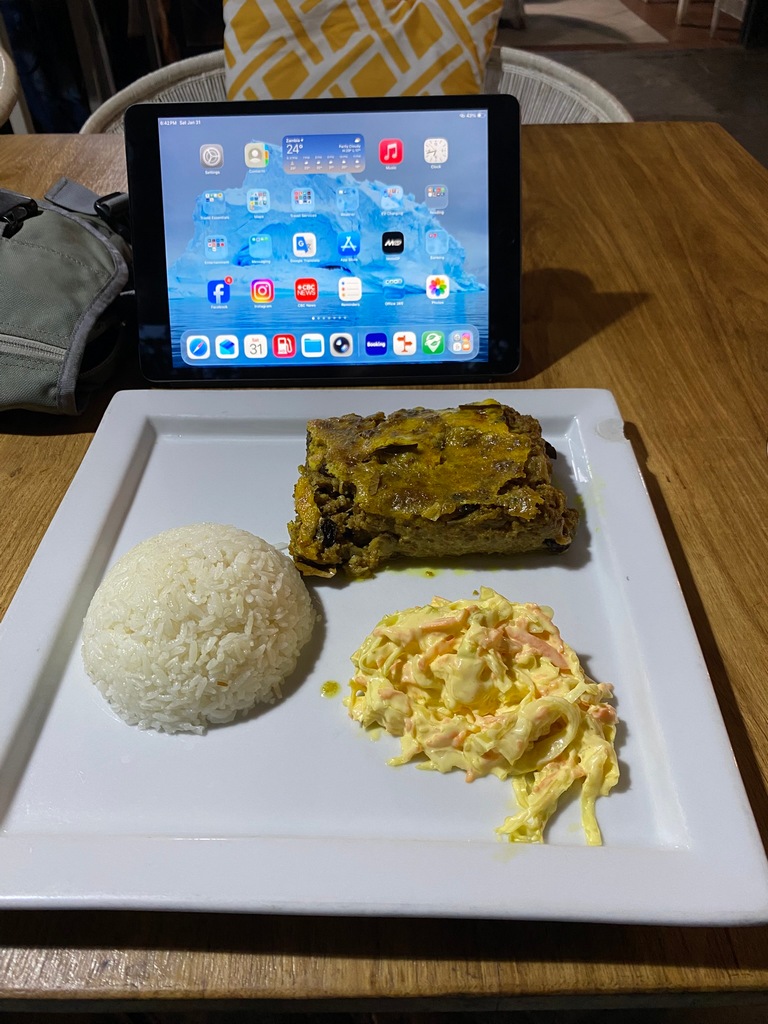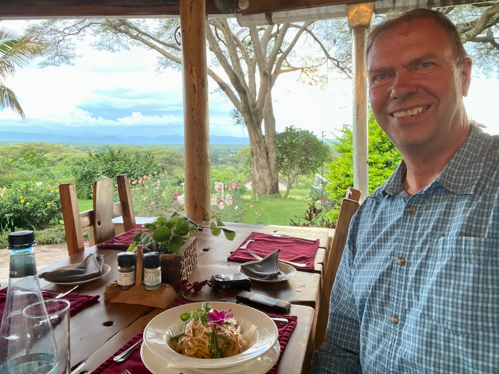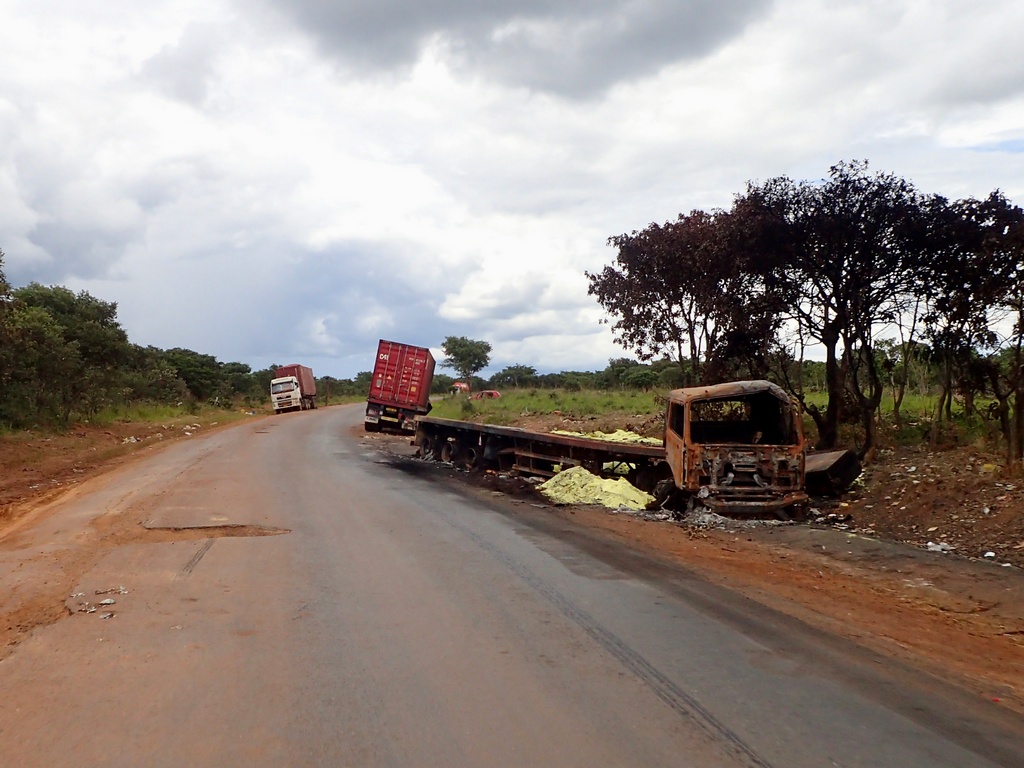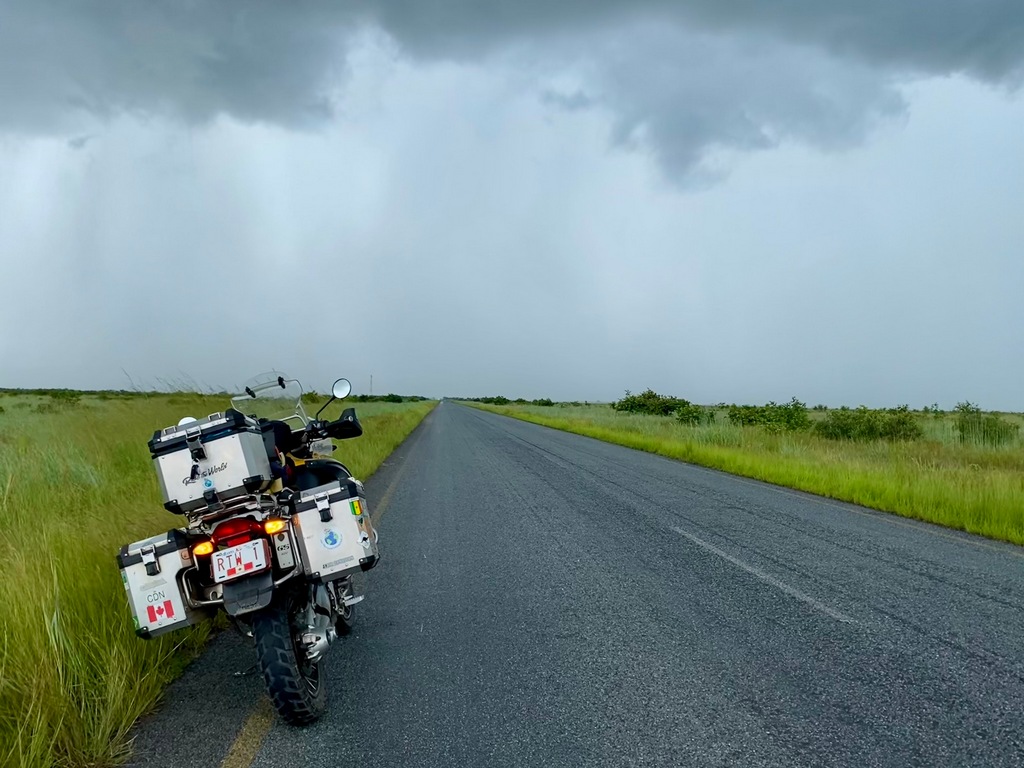 I left Lusaka on Saturday morning, going against the traffic heading into the city. Whenever there are predictable queues of traffic (like rush hour or at a speed bump) there will be people selling everything from bananas to popcorn to sunglasses. This allows you to reframe congestion. It isn’t so much a delay in your trip but a shopping opportunity. After a few shopping opportunities I was out of the core and heading north on a four-lane road that soon turned into a two-lane road with the other side being under construction. This went on for a couple of hours, all the way to Kabwe where I stopped at a Hungry Lion for an ice cream. At Mposhi, a little further north, the Great North Road turned east while the T3 continued north. Mposhi was especially hectic with truck traffic, but the traffic dropped off significantly when I left town and it was much more relaxed riding. Soon I pulled into the Fika Lodge, a spot that Heidi Van der Merwe had stopped at and really enjoyed. I relaxed in the restaurant with a cappuccino (more a cafe au lait) and a chocolate bar. For dinner I noticed bobotie on the menu, a dish that I make regularly at home from a Knorr package. The flavours were similar, but “my” (Knorr) recipe had a few different ingredients (like green beans and green apple) but it was fun having it in the “wild”.Heading out of Lusaka on Saturday morning