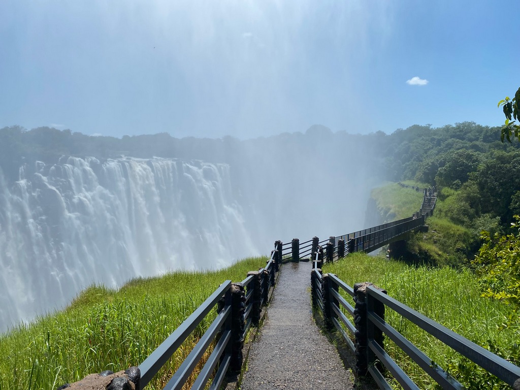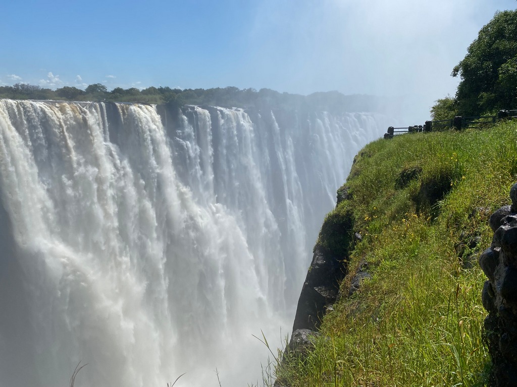 Victoria Falls, Zambia! I crossed the Zambezi River to the combined customs building on the Zambian side. The building had the exit from Botswana on the left and the entry into Zambia on the right side of the hall. And the booths were helpfully labelled and numbered. Exiting Botswana was super easy (and getting the Carnet stamped out of the SACU was a nonissue) and then I crossed the hall to enter Zambia. Instead of the two wickets on the Botswana side, here there were half a dozen which included an insurance booth (mandatory before they would stamp the Carnet) and a computer station where I could pay the road tax, carbon tax and the bridge toll. So a bit more work but still not especially difficult. Then it was a short ride of 70 kilometres to Livingstone. The roads were wet in spots but I missed the rain until the last 300 metres to the hotel. Then the heavens opened up. I parked up under a tree and checked in. After the rain had stopped I went for a walk around town, with the goal of checking out the Golden Leaf restaurant for reportedly delicious Indian food. Alas, they were closed for maintenance. A pizza at Debonaire's it was then. Wednesday morning, I rode the 11 kilometres to the Smoke that Thunders where parking was free but entry to the park was US$20. I think these are the most spectacular falls I have seen (which includes Fos de Iguatsu and Niagara Falls as well as a bunch of spectacular falls in Iceland). Even more impressive is that the Zambian side of the falls is about 1 kilometre wide and the Zimbabwe side is another 700 metres. Since I declined to rent a poncho I was soaked in a matter of moments. That afternoon, after drying off and getting a change of clothes at the hotel I walked over to the Livingstone Museum which had displays on the origins of humanity, village life, local fauna and of course an exhibit dedicated to Dr. David Livingstone. Unfortunately, no photos allowed inside this fascinating museum. Afternoon coffee and a scone at Cafe au Lait was a tasty treat. I had a read through the Zambia chapter written by Audrey in 2008, what a treat! Link to Chapter 16: Zambia.