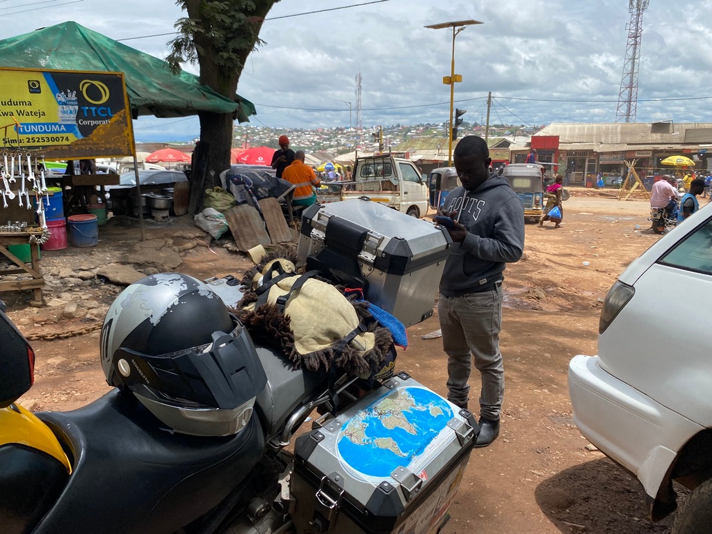 After having a breakfast delivered to my room, it was only 115 kilometres from the Gracious Lodge to the border. With that perfect new road, it was an easy ride and I arrived at Nakonde on the Zambian side of the border at about 10:15. Like most border towns, Nakonde was hectic and then I entered the actual border zone which was really chaotic. Someone came up to me and said they were a friend of Richard, the fixer I had texted the day before, and to follow him. He ran ahead through the chaos until I met Richard at the combined Zambian/Tanzanian customs and immigration building. I could see now why Johan really dislikes this border crossing just from a parking perspective. On the bike it was easy enough to park off the road, in front of the building. Richard guided me first to the health check where they checked my Yellow Fever vaccination card and then to Zambian immigration to get stamped out. That was quick and easy. Right next to that was the Tanzanian immigration which was a bit more convoluted. I had to fill in a card with my information and then we had a discussion about getting a transit visa or a 90-day tourist visa. Since I was coming back through Tanzania, they suggested the more expensive tourist visa because then I wouldn’t have to pay again when re-entering from Kenya. With that figured out, I then took a piece of paper to a bank in the same building where they took my US$50 and gave me a receipt to give to immigration who then stamped my passport. (Though it said “single entry” I was assured by the immigration office that I could enter Tanzania again if I came from an East African Community country, like Kenya) Now Richard took over with my carnet, getting it stamped out of Zambia and into Tanzania (with various customs officials coming out to inspect my bike and its VIN). This process took a while but after about two hours I was ready for Tanzania!Good morning Isoka!
