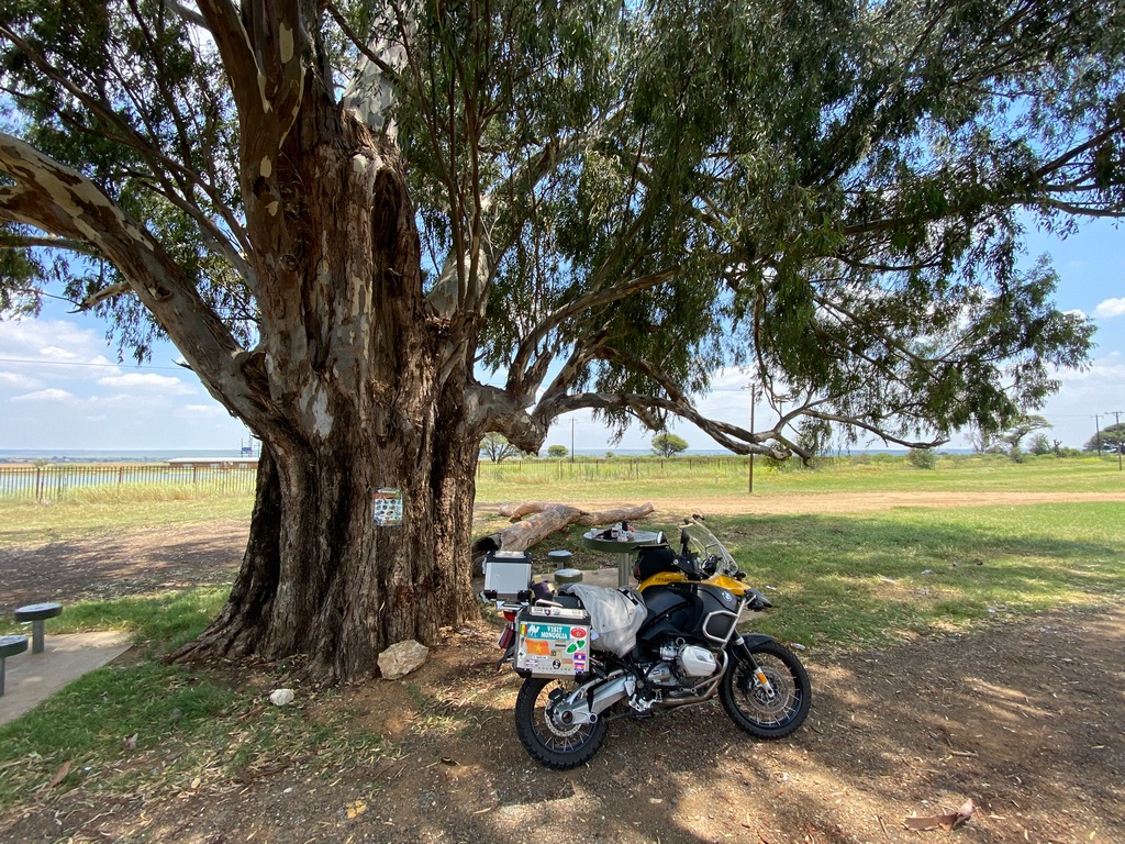 I had planned to ride up to Kimberley from Gordons Bay, crossing the Karoo fairly quickly, with one stop. But a stomach bug made me lose my confidence in being able to manage it, so I broke the ride into three days, stopping in Oudtshoorn and Victoria West. On Sunday I left Gordons Bay and rode the N2 for almost 200 kilometres before turning onto the R324 towards Barrydale. It was a pleasure to get off the busier N2 and onto a smaller road, crossing the Tradouw Pass to Barrydale. Here I stopped in at Diesel & Creme, a cafe suggested by Michnus. It was a very busy place on a beautiful summer Sunday. While the milkshake and hotdog probably weren't good for my stomach bug, they sure were delicious. A few kilometres further through the Klein Karoo was the famous Ronnie's Sex Shop. It was Ronnie's vegetable stand until some friends decided to prank him by adding the word "Sex". Ronnie noticed that business picked up and now it is a must-stop when crossing the Klein Karoo. In Oudtshoorn I had booked a room at the Duckpond Lodge, in the town's suburbs. Richard was the host for this lovely homestay, and it was such a treat to have a pleasant evening conversation with him rather than being in a sterile hotel room by myself. Monday, I rode through De Rust on to Meiringspoort, a nice canyon through the Swartberg mountains. Unfortunately, the drought in this area meant that the famous waterfalls were dry. It was a nice walk to the falls though and the temperatures weren't too high to be walking around in full motorcycle gear either. After stopping for lunch at 4 Sheep deli in Beaufort West (Lamb Sandwich) I continued on to Victoria West and the Victoria Oaks Guesthouse. I arrived fairly early, and my stomach had held out for the day so I probably could have made it to Kimberley, but in situations like this discretion can be the better part of valour.Good morning Gordons Bay!